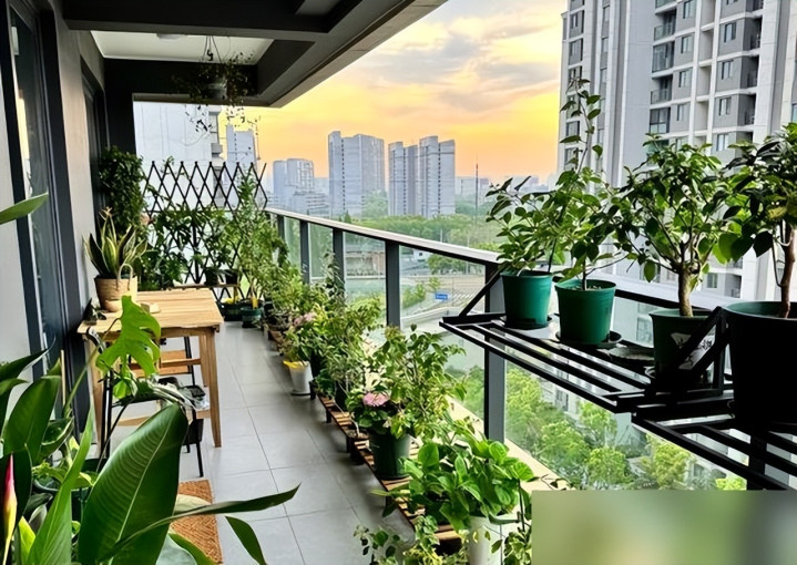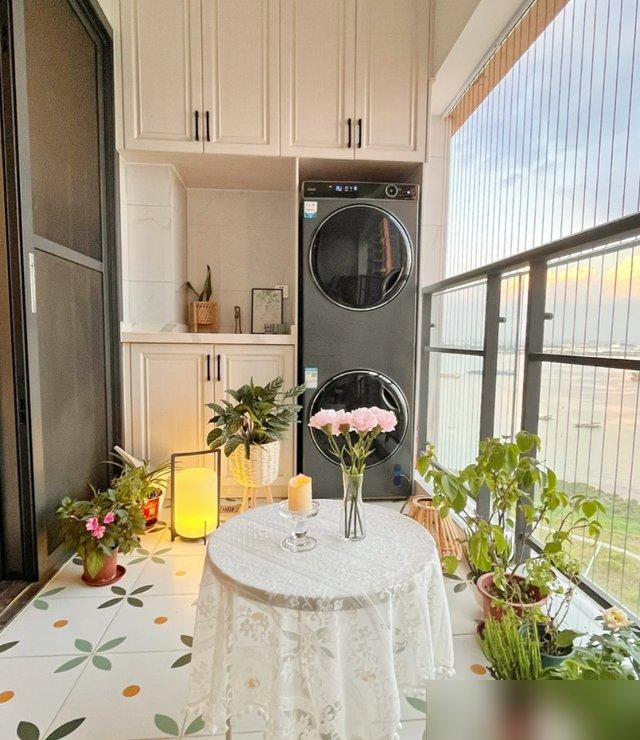 有人说“开放式阳台太费精力”,可精力里藏着甜啊——擦玻璃时摘两片自己种的迷迭香,泡在水里擦,连抹布都是香的;晒被子时闻着太阳晒透棉絮的味儿,比什么香水都让人安心;傍晚坐在阳台看夕阳,楼下的阿姨喊“二丫,吃饭啦”,楼上的小朋友跑着喊“我先去玩滑梯”,这风里裹着的都是“活着的劲儿”。